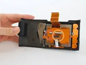 Оттяните оранжевый кабель разъёма от основного корпуса камеры с помощью пинцета.