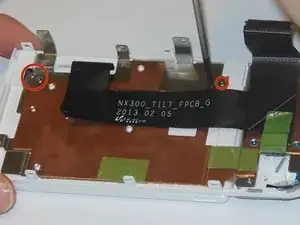 В модели NX300M под надписью AMOLED behind display расположен дополнительный винт, который следует выкрутить перед снятием задней панели камеры.