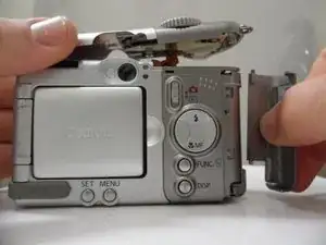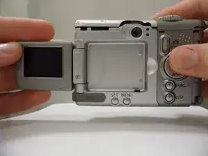 Это пошаговое руководство демонстрирует, как снять заднюю крышку камеры Canon PowerShot A80. Возможно, вам понадобится это руководство, чтобы получить доступ к внутренним компонентам камеры, как предварительный шаг для другого руководства, или если задняя крышка повреждена или треснула.