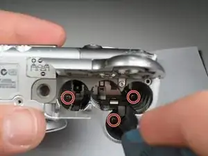 Выверните три винта Phillips №00 с нижней части камеры.