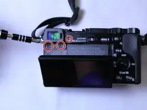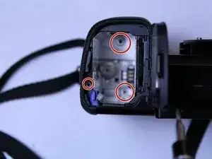 Используйте отвертку Phillips #00, чтобы удалить винты рядом с креплением ремня камеры.