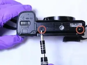 Удалите два винта на дне камеры с помощью отвертки Phillips #00.