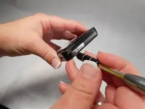 Отверткой Phillips №00 удалите все четыре винта длиной 0,3 см, расположенные на обоих концах и снизу вашего Cyber‑Shot.