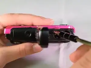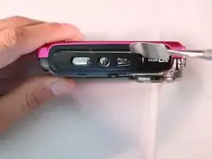 Вставьте плоский край пластикового инструмента для вскрытия между внутренним корпусом и задней наружной крышкой.