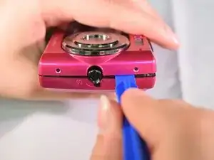 Поместите пластиковый инструмент для вскрытия в зазор между передней и задней крышками.