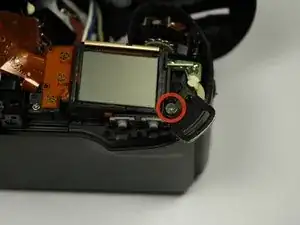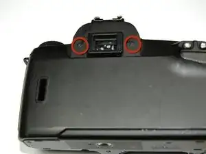 С помощью отвертки Phillips #00 открутите два винта Philips 4.9 мм, расположенные с обеих сторон видоискателя.