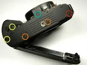 С помощью отвертки Phillips #00 открутите шесть винтов на нижней части камеры.