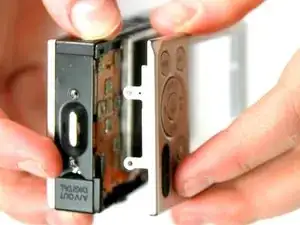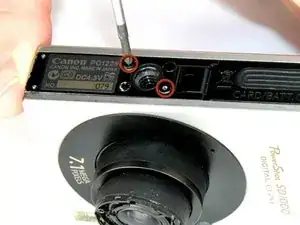 Выверните два винта 2,9 мм с боковой панели, находящейся дальше всего от объектива.