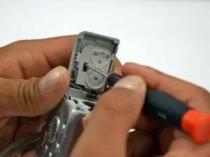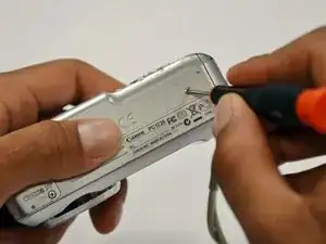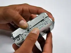Вывинтите три винта Phillips #00 длиной 2 мм, расположенные на нижней стороне фотоаппарата.