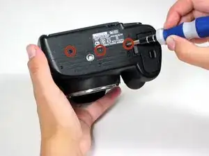 Затем отверткой Phillips #00 выкрутите три винта вокруг видоискателя.