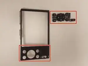 На этом этапе выдавите любые застрявшие кнопки и очистите внутреннюю часть, где кнопка располагается в рамке, изопропиловым спиртом и ватной палочкой, так как внутрь камеры могла попасть влага, вызывающая липкость.