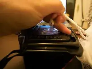 Затем, используя присоску — я использовал присоску от губки — прикрепите присоску к пластиковому стеклу. Теперь потяните стекло от корпуса камеры, чтобы снять старое стекло. Для этого может потребоваться небольшое усилие.