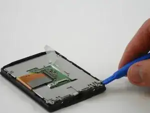 С помощью пластикового инструмента для вскрытия аккуратно отведите назад корпус ЖК-экрана.