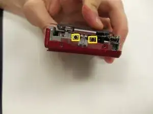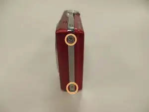 С правой стороны камеры найдите и удалите два винта длиной 3,25 мм, выделенные на фото.