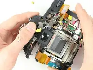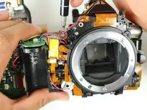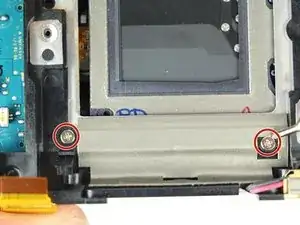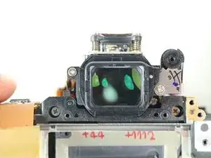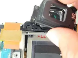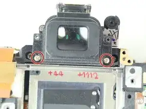 Выкрутите два винта J000 длиной 6,5 мм, которые крепят видоискатель.