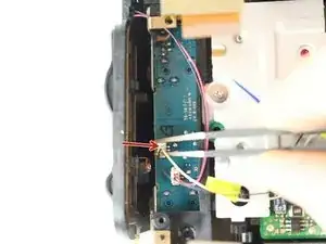 Осторожно отсоедините красный разъем с помощью пинцета.