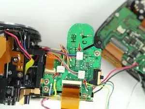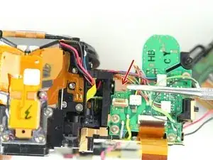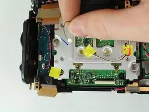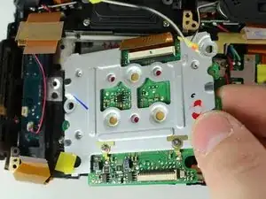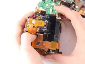 Аккуратно отогните ленточный кабель в нижнем левом углу камеры.