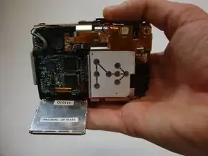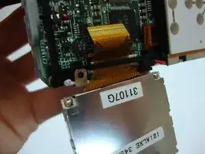 Снимите ЖК-экран с камеры. Убедитесь, что электрическая плёнка вышла вместе с экраном.