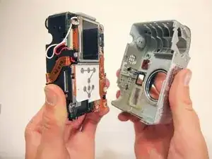 При вытягивании камеры из корпуса обратите внимание на маленькую мягкую пластиковую крышку сбоку. Эта крышка отделится от остальной части устройства.