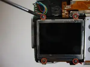 Используя отвертку Phillips #00, снимите четыре винта 4.40 мм, фиксирующие ЖК-экран к раме.