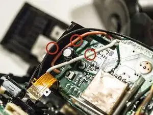 Отсоедините 3 провода, идущие от головы вспышки к плате.
