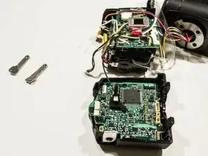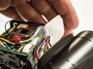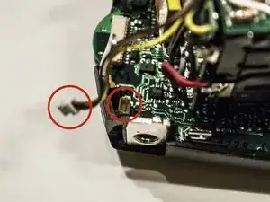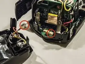 Снимите коричневый и жёлтый провода с платы, соединяющие отсек для батарей.