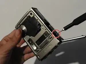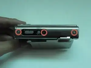 С помощью отвертки Phillips #00 открутите два винта с боку камеры.