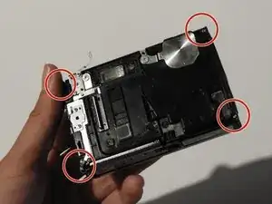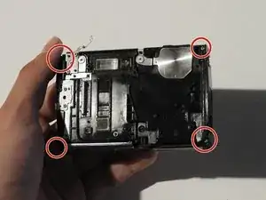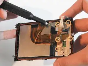 Используйте отвертку Phillips #00, чтобы открутить четыре винта на передней панели камеры.