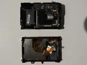 Медленно и осторожно отделите переднюю и заднюю части камеры, обнажая электрические ленты.