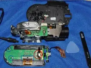 Как заменить гибкий кабель ЖК-дисплея на Samsung SMX 30F. Этот кабель соединяет ЖК-дисплей с материнской платой камеры. Для замены только самого дисплея процесс гораздо проще и занимает около десяти минут.