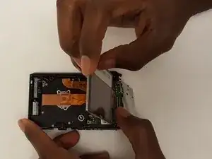 Чтобы отключить шлейф ЖК-дисплея от разъёма с нулевым усилием вставки (ZIF), сначала поднимите маленькую чёрную защёлку ногтем.
