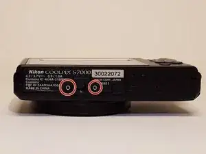 Поставьте камеру на правый бок и снимите два винта JIS длиной 40 мм с помощью отвёртки JIS J000.