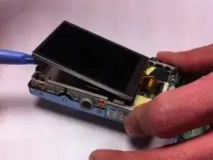 Теперь ЖК-экран должен быть отключен от остальной части камеры, и можно использовать плоский инструмент, чтобы извлечь его из корпуса.