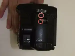 Задняя крышка крепится несколькими винтами с четырех сторон камеры. С левой стороны находятся два винта возле крепления для запястного ремня.