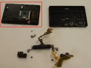 Стрелка, указывающая на черную область, обозначает еще одну наклейку. Эту наклейку необходимо будет удалить, чтобы продеть шлейф через заднюю крышку. Этот шлейф подключен к ЖК-панели.