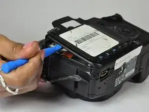 Используйте пластиковый инструмент для открывания, чтобы аккуратно приподнять заднюю часть корпуса от остальной части камеры.
