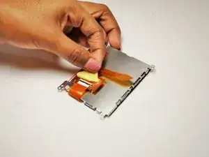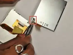 Используйте кончик лопатки, чтобы отключить ZIF-разъём на левой стороне камеры. Лента в этом устройстве была порвана в процессе снятия задней крышки, поэтому фотографии этого шага отсутствуют.