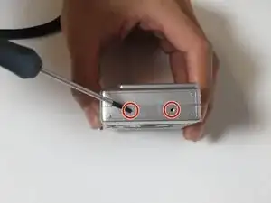 Найдите шесть винтов, которые нужно удалить для открытия корпуса камеры. Эти винты расположены на дне и по обеим сторонам камеры.