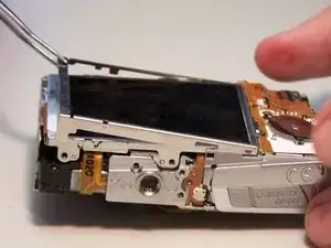 На этом этапе экран должен легко подняться из корпуса камеры.