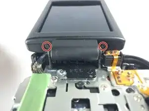 Снимите два винта Phillips #000 длиной 3 мм на внешнем крае панели ЖК-экрана.
