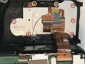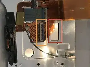 Снимите ленточный кабель экрана от разъёма. Выполните ту же процедуру, что и в предыдущем шаге.