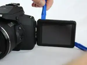 Используйте открывающее средство, чтобы снять корпус на шарнире ЖК-экрана.