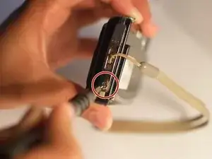 Прямо над (или рядом с) шнурком, который прикрепляет ремешок для запястья, находится гибкий шлейф. Будьте крайне осторожны, чтобы не порвать его при снятии шнурка. Этот шлейф соединяет переднюю панель с материнской платой.