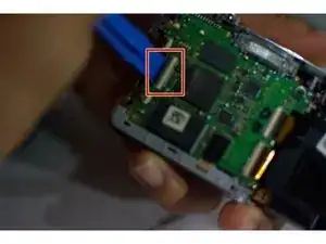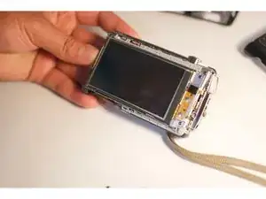 Снимите заднюю панель корпуса камеры, где расположен ЖК-экран.