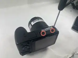 Используйте отвертку JIS, чтобы удалить семь винтов с рамки камеры.