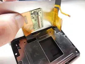 Отсоедините шлейфы по бокам чипа под ЖК-экраном, слегка потянув за них.
