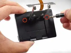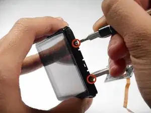 Используя крестовую отвёртку Precision Phillips #000, удалите оба винта 3,5 мм по обе стороны ЖК-экрана.
