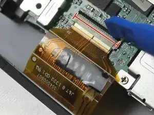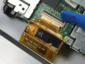 Чтобы отсоединить ленточный кабель, используйте кончик пластиковой лопатки или ноготь, чтобы отогнуть маленькую фиксирующую планку вверх.