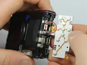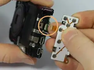 Аккуратно снимите верхнюю кнопку, оттянув её от основного корпуса камеры.
