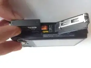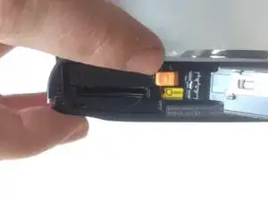 Сдвиньте оранжевый переключатель вправо, как показано. Теперь аккумулятор можно извлечь. Для повторной установки выполните шаги в обратном порядке.